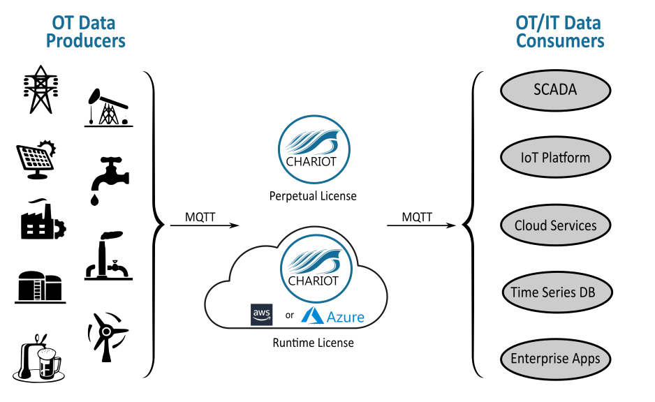 De l’industrie du gaz et du pétrole à l’industrie manufacturière, en passant par l’énergie et bien plus encore, de nombreuses entreprises industrielles utilisent Chariot pour connecter en toute sécurité tous leurs actifs industriels et transférer les données de l’OT vers l’IT afin d’optimiser leurs opérations et leurs activités. Le broker Chariot MQTT est facile à installer et à configurer, permettant aux nouveaux clients de commencer à exploiter les données IIoT en quelques minutes.